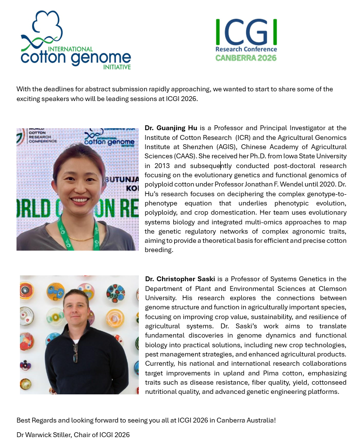Dear All, We are exciting to announce that the first two key speakers for the 2026 ICGI Research Meeting have been identified (below).