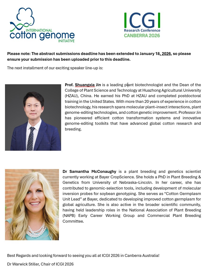 Attached is the Speaker update- Part 3 who will speak in the 2026 ICGI Research Meeting in Canberra, Australia.
